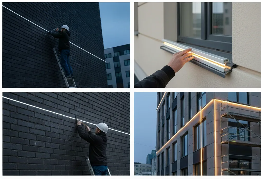 Профессиональный подход к монтажу гибкого неона на фасад обычно включает следующие этапы и преимущества: