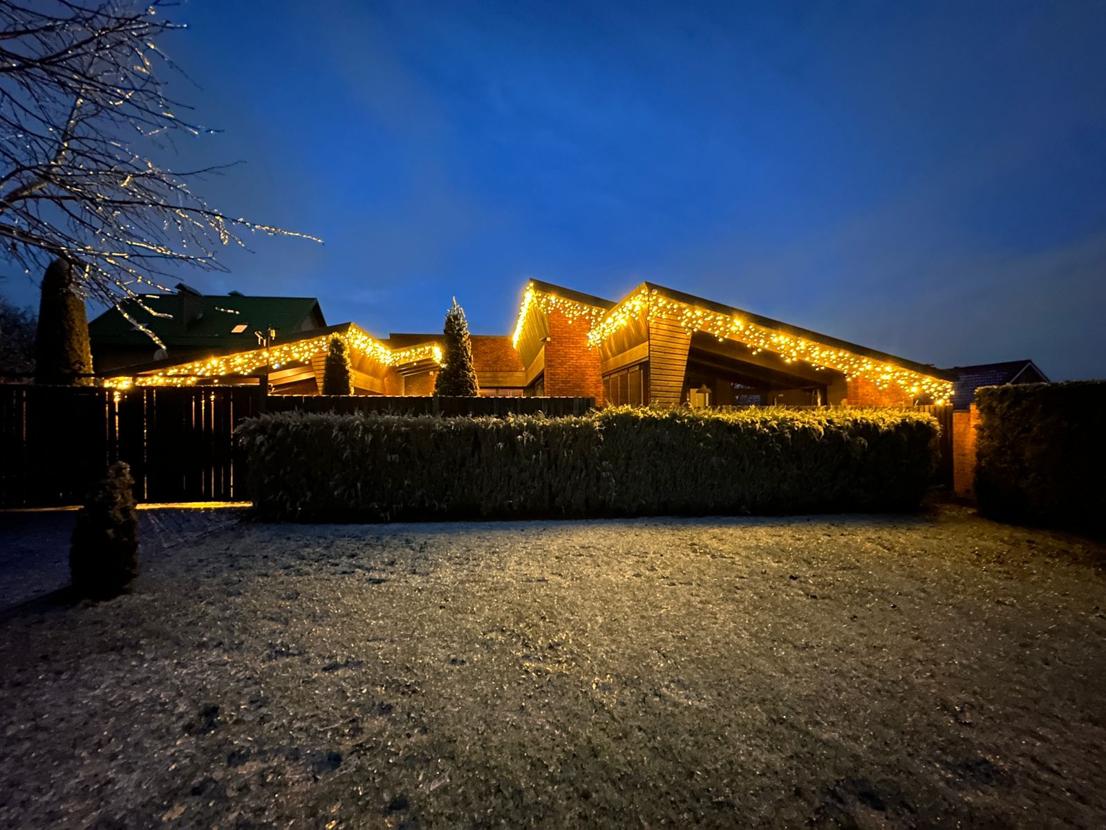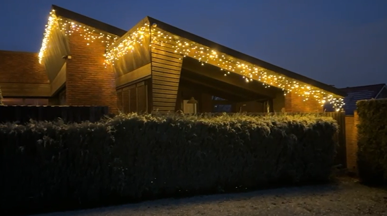 Длинные ряды искрящихся фонариков, напоминающие сосульки или капли дождя придают дому уютный и праздничный вид. Мы выбрали светодиодную бахрому не только за её красоту, но и за её энергоэффективность и долговечность, что позволяет нам радоваться её сиянию на протяжении всех зимних праздников.