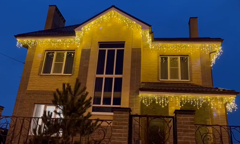 В работе использовали только профессиональное оборудование с высокой степенью влагозащиты, которое не боится сильных морозов и снегопадов. Теперь этот дом — самый яркий в округе!