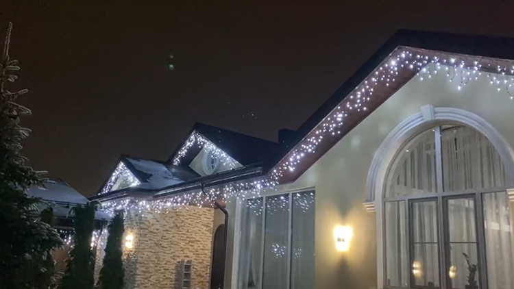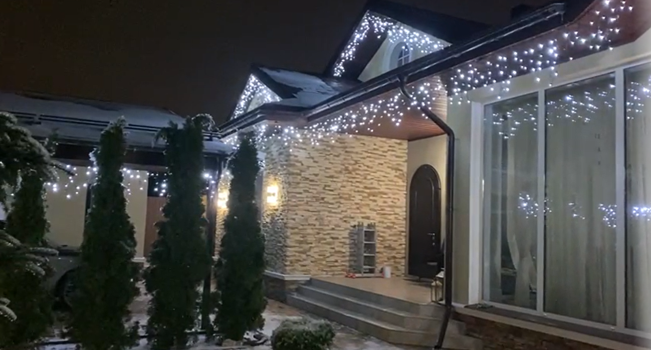 Преображение продолжается! Ещё один дом полностью погрузился в волшебную атмосферу Нового года, благодаря эффектному украшению фасада светодиодной бахромой.